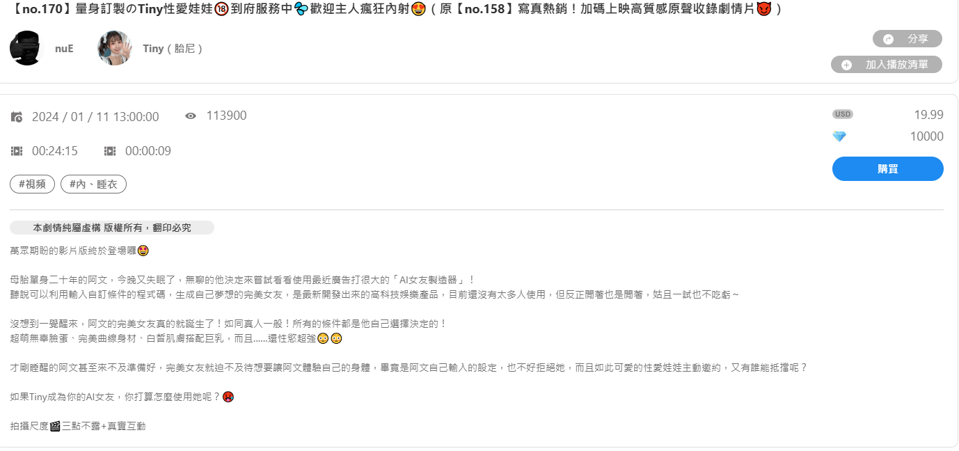 JVID tiny胎尼 2024.01.11 量身訂製のTiny性愛娃娃 到府服務中 歡迎主人瘋狂內射[932MB/MP4/WF]