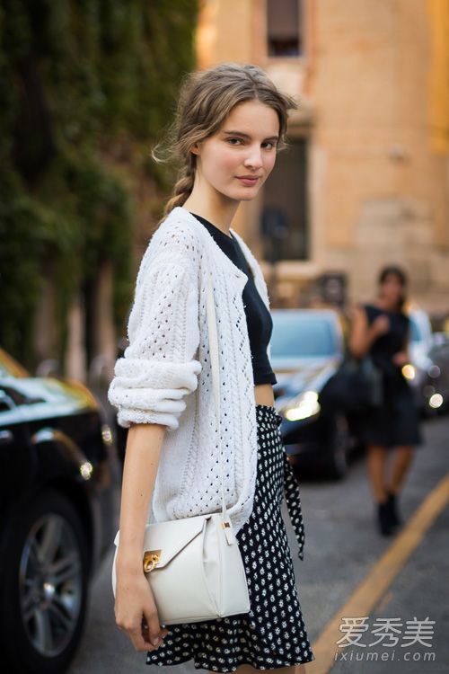 毛衣外套配裙子也是各种美,白色毛衣外套纯净清新,穿出温柔恬静的气质,十分让人心动。