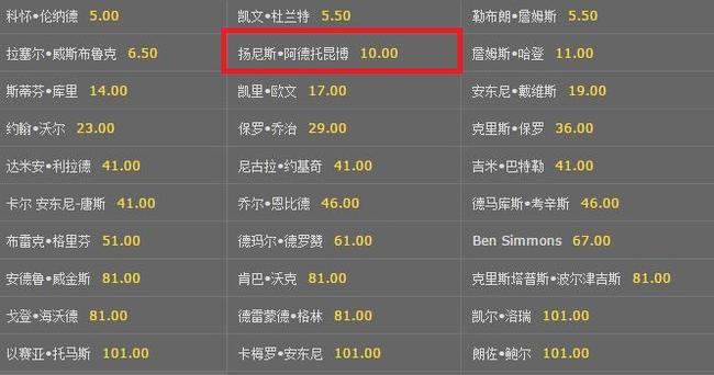 標題: 科比预言将成真?字母哥MVP赔率超哈登库里