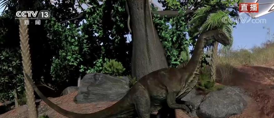 昨天,我们通过3D扫描以及虚拟系统,还原了这只恐龙生活的环境,一起来进入我们虚拟中的侏罗纪世界。当年的地球上还没有花,也没有草,有的是蕨类植物,还有松树、银杏。如果真的可以穿越到侏罗纪早期,那么给禄丰龙带去最好的礼物,可能就是我手上的松柏,它可能会是恐龙爱吃的食物。